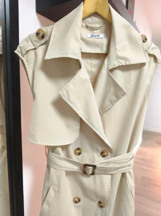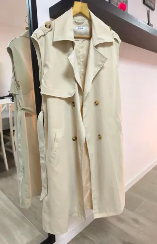 Gabardina clásica de estilo chaleco. Talla única. Color crema/beis. - Diseño de doble botonadura. - Cinturón para ajustar. - Bolsillos frontales.