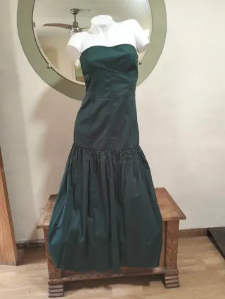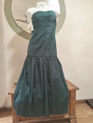 Elegante vestido largo de Zara, perfecto para ocasiones especiales. La tela es tipo gabardina, con cuerpo, es ajustado y a partir de las cadera se abre - Diseño sin tirantes. - Falda con vuelo y detalle fruncido. - Corte favorecedor.