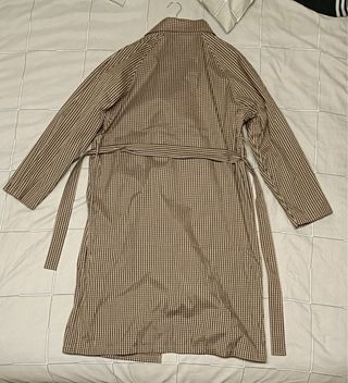 Gabardina larga con estampado de cuadros. - Diseño de doble botonadura. - Cinturón para ajustar. - Bolsillos laterales. Mangas : 41cm desde axila , desde hombro 66cm. Largo : 109cm Ancho : 56cm
