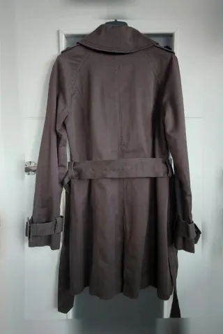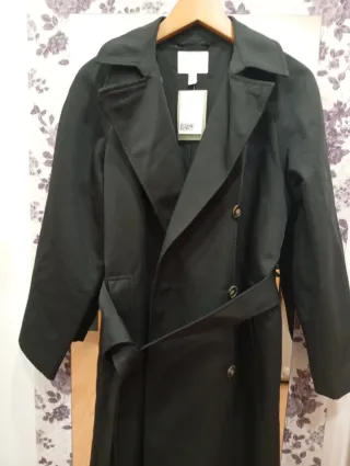 Gabardina larga con cinturón, estilo clásico y moderno. - Diseño de doble botonadura. - Puños ajustables con botón. - Bolsillos laterales. - Cuello solapa. -El único desperfecto es la etiqueta.