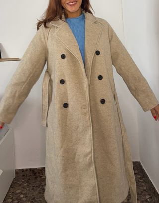 Abrigo largo ligero de H&M para mujer en color beige. Un clásico que no pasa de moda. - Diseño entallado. - Cuello solapa. - Cierre de botones. - Bolsillos frontales con solapa. - Puños vueltos.