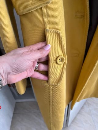 Gabardina Vintage color amarillo de la marca El Corte Inglés. Se encuentra en perfecto estado. Sólo tiene uno de los ganchos de la hebilla roto. És una talla 40 aunque equivale más bien a una talla 38 corta de mangas.