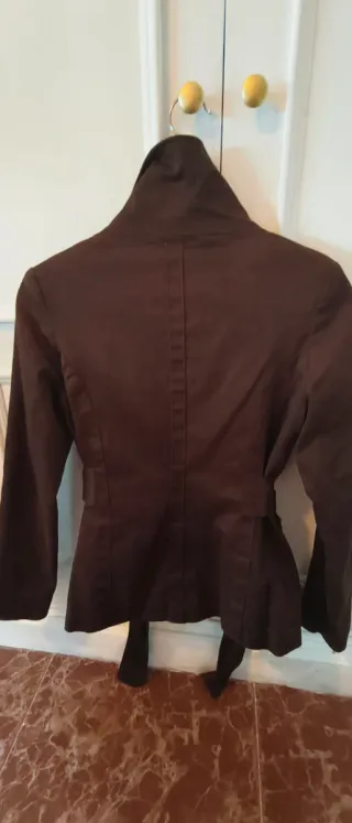 Preciosa gabardina de color marrón. - Corte clásico y elegante. - Diseño de doble botonadura. - Bolsillos funcionales a los lados. - Manga larga. - Material: 98% poliéster 2% poliuretano.