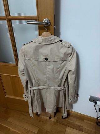 Gabardina clásica de C&A en color beige. Está totalmente nueva, me confundí de talla y no pude descambiarla. En su embalaje. - Diseño de doble botonadura. - Cinturón para ajustar. - Puños con detalle de botón. - Solapas amplias.