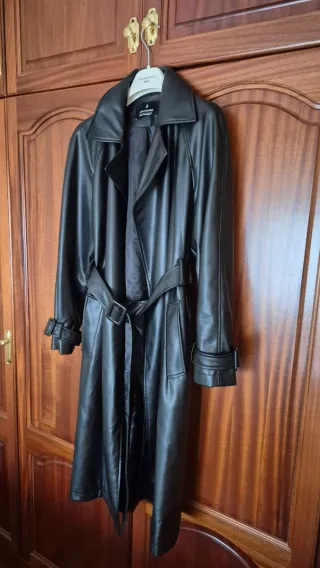 Elegante abrigo largo de estilo gabardina. - Material: Polipiel. - Diseño con cinturón. - Puños ajustables. BAJADA DE PRECIO DE 51€ a 41€