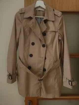 Gabardina de la marca Stradivarius, talla XL (equivalente a 42 o 44). Es de color beige y tiene un corte bonito. De hace un par de años, usado muy poco por tener más gabardinas En la foto no sé aprecia bien, pero queda muy bonita puesta