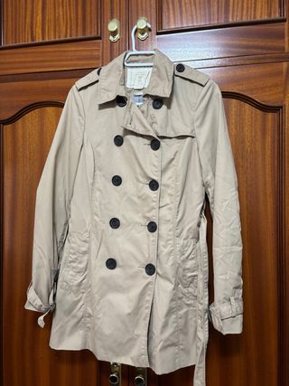 Gabardina clásica de Stradivarius en color beige. Un básico atemporal para cualquier armario. - Diseño de doble botonadura. - Cinturón ajustable a la cintura. - Cuello solapa. - Puños con trabillas.