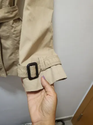 Gabardina corta de Stradivarius. - Diseño de doble botonadura. - Cinturón para ajustar. - Puños con botón.