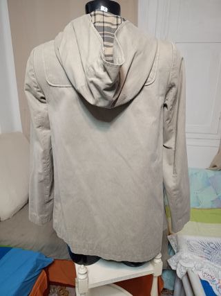 Preciosa gabardina de Stradivarius en color beige, talla S.Esta en muy buen estado. - Diseño elegante y versátil. - Perfecta para entretiempo. - Cierre de cremallera - Cintura ajustable con cordón. Yo diria q es mas bien una M