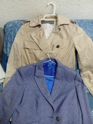 Conjunto de dos prendas de vestir de la marca Zara. - Una gabardina de color beige. - Una chaqueta de color azul.