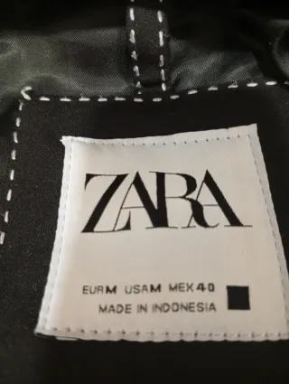 Chaqueta larga de la marca Zara en color negro. Diseño moderno y versátil. - Cierre de cremallera frontal. - Bolsillos con solapa en el pecho. - Detalle de hombreras. - Cuello redondo.