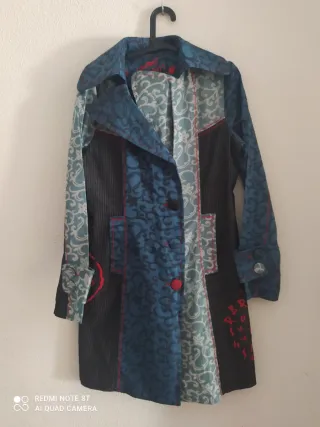 Gabardina de la marca Desigual con un diseño patchwork muy original. - Combinación de estampados y texturas. - Cierre de botones. - Bolsillos frontales.