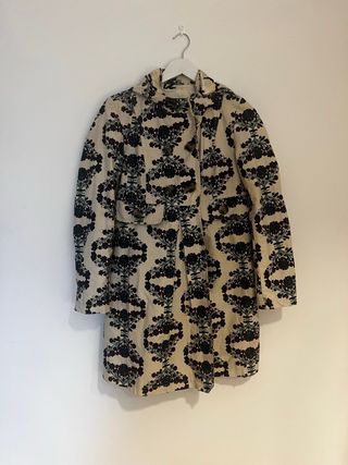 Trench estampado de la firma Laga. - Diseño con estampado floral en tonos beige y negro. - Cierre de doble botonadura. - Bolsillos frontales. - medidas : axila 46 cm largo 88cm