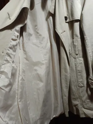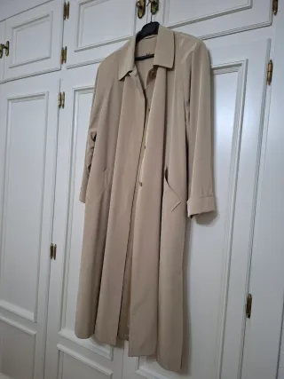 Gabardina tres cuartos, color beige, impecable, tallaXL o XXL, sirve para las dos Largo desde el cuello 0'88 La manga es francesa, sería desde el hombro 0'60