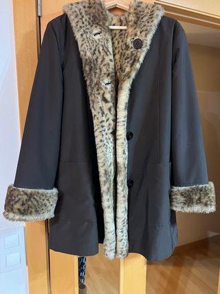 Gabardina reversible pelo leopardo. Mucho abrigo e impermeable Talla 42 Ver foto puños