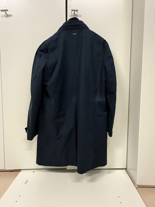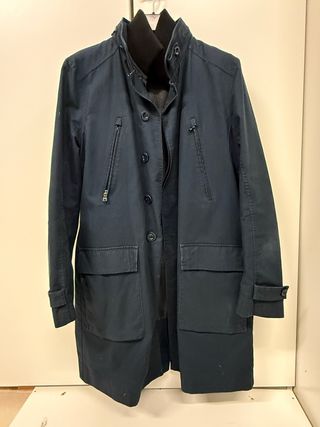 este abrigo tipo gabardina de la prestigiosa marca DKNY. Es una prenda versátil, diseñada para ofrecer un aspecto impecable tanto en contextos profesionales como en salidas casuales, sin sacrificar la protección contra el frío. Bastante usado pero cuidado ✨ Detalles que marcan la diferencia: • Diseño Premium: Color azul marino profundo (Navy), elegante y fácil de combinar con cualquier outfit. • Doble Aislamiento: Interior forrado con una capa de lana gris que garantiza calidez en los días más fríos. • Funcionalidad Total: Cuenta con bolsillos exteriores de gran capacidad con solapa y bolsillos superiores con cremallera re