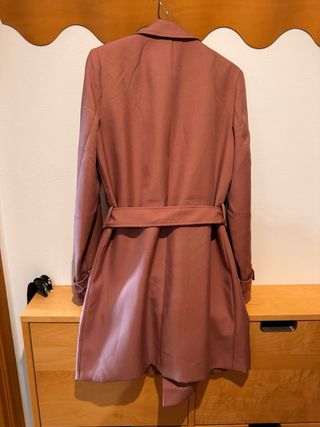 Gabardina de la marca Stradivarius en color Rosa muy claro, prácticamente es beige. Clásico para cualquier armario - Diseño de doble botonadura. - Cuello con solapas. - Cinturón para ajustar la cintura. - Puños con trabillas y botones.