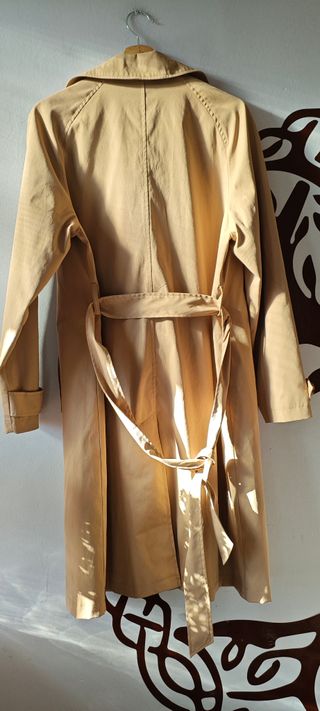 Gabardina fina de Stradivarius. - Diseño elegante y ligero. - Color beige versátil. - Talla S. - Tela muy fina, prácticamente nueva, sin botones.