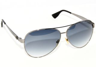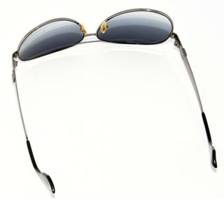 Elegantes gafas de sol Giorgio Armani con montura plateada y lentes negras. Se entregan en su estuche original. - Montura metálica. - Lentes oscuras.