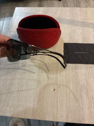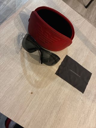 Gafas de sol Emporio Armani con un diseño moderno y elegante. Incluyen su funda protectora. Todo bien solo el estuche un poco gastado - Funda rígida de color rojo con el logo de Emporio Armani. - Paño de limpieza con el nombre de la marca.