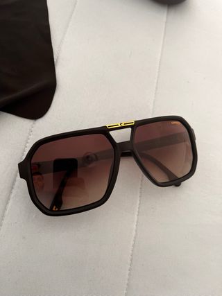 Gafas de sol Carrera con un diseño moderno y elegante. - Montura de color negro. - Lentes degradadas en tono marrón. - Detalle dorado en la parte superior. Las gafas valen 180 euros nuevas y tienen muy poco uso practicamente ninguno estan nuevas