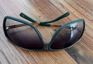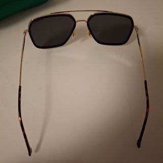 Gafas de sol estilo aviador con montura de carey. - Diseño clásico y atemporal. - Lentes oscuras para protección. - Detalles dorados en el puente. - Cristales en muy buen estado, sin que el hecho de ser usadas, haya minorado la estrema calidad de protección - No tengo la funda original, pero.envio una que las protege bien - Contesto a todas las ofertas o planteamientos con brevedad, y soy bastante flexible