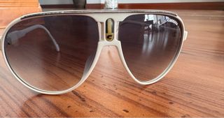 Gafas de sol de la marca Carrera en color beige y marrón.son muy ligeras y fáciles de llevar no pesan, quedan pegadas a la cara .tienen un fallo en el interior de uno de los cristales de ahí el precio.al ser en la parte interior no se nota - Montura de color beige. - Lentes de color marrón.