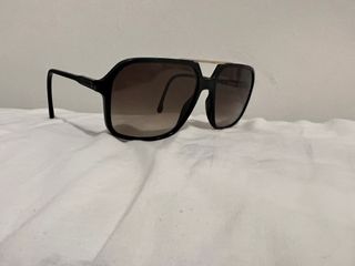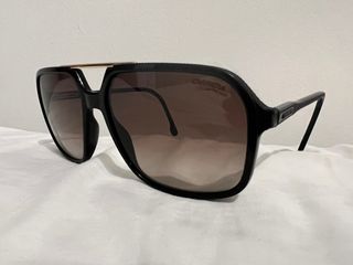 Gafas de sol Carrera de estilo retro. Son gafas elegantes y en buenas condiciones. - Montura en tonos negros y marrones. - Lentes ligeramente ahumadas. Incluye funda original