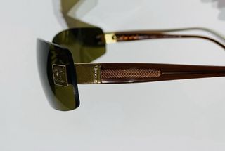 Elegantes gafas de sol Chanel auténticas con un diseño moderno y sofisticado. - Montura metálica dorada. - Lentes en tono marrón degradado. - Detalle del logo CC en las patillas. - No tienen funda. - Uno de los cristales está un poquito rayado pero no es demasiado apreciable y no afecta a la visión.