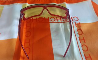 Gafas de sol de la marca Chanel con un llamativo diseño. - Montura de color rojo. - Lentes con tinte. - Detalle del logo de Chanel en las patillas.