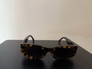 Elegantes gafas de sol Chanel con un diseño clásico. - Montura de acetato con estampado tortuga. - Lentes con tinte marrón. - Usada dos veces. - Funda deteriorada.