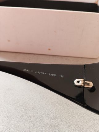 Elegantes gafas de sol Chanel con montura negra y lentes grises. Incluyen su caja original. Montura de acetato. - Lentes con protección UV. - Diseño moderno y sofisticado.Detalles del Producto Marca: Chanel. Número de Modelo: 5087-H, que corresponde a un diseño de estilo máscara o "shield". Código de Color: c.501/87, que indica una montura en color negro. Medidas: 62☐15: El ancho de la lente es de 62 mm y el ancho del puente es de 15 mm. 125: La longitud de la patilla es de 125 mm.