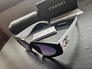 Elegantes gafas de sol Chanel con un diseño moderno. - Montura bicolor en negro y blanco. - Logo de Chanel en las patillas. - Incluye estuche y paño de limpieza.
