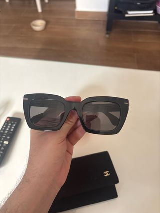 SE VENDEN EN MANO EN MÁLAGA Elegantes gafas de sol Chanel con montura negra y lentes grises. Incluyen su caja original y documentación. - Montura de acetato. - Lentes con protección UV. - Diseño moderno y sofisticado. - En perfectas condiciones.