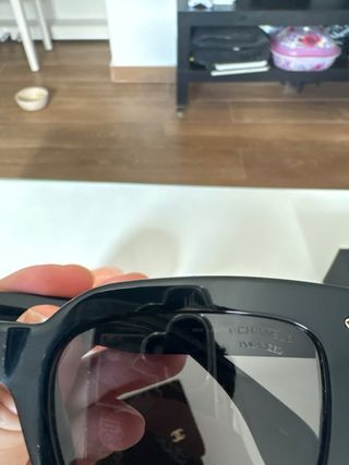Elegantes gafas de sol Chanel con montura cuadrada. - Polarizadas. - Detalle de cadena en las patillas. - En perfecto estado, unico detalle un pequeño rayón en la varilla. Se puede apreciar en la segunda foto. - Precio en Channel nuevas es de 480€. - En su caja original con su estuche. - Precio negociable.
