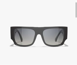 Elegantes gafas de sol Chanel con un diseño moderno y sofisticado. - Montura de acetato negro brillante. - Lentes degradadas. - Detalle del logo de Chanel en las patillas.