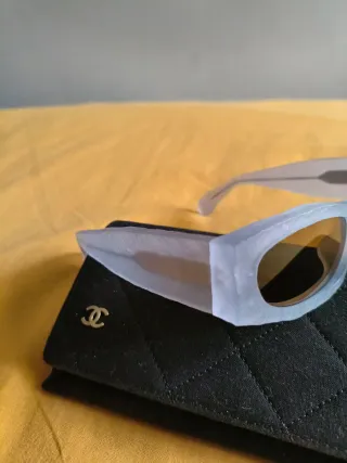 Elegantes gafas de sol Chanel con un diseño moderno y llamativo. Perfectas para añadir un toque de estilo a cualquier atuendo. Lo cambio para un celular iphone que fuctione