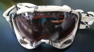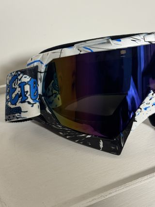 Gafas de esquí con un diseño moderno y llamativo. - Montura blanca. - Lente con acabado multicolor. Totalmente nuevas. Las fotos son parte de la descripción y no se aceptarán devoluciones. No se la marca.