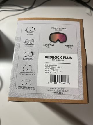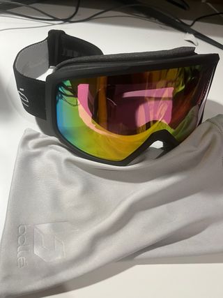 Gafas de esquí Bollé con lente espejada multicolor. - Montura negra. - Correa ajustable. - Incluye funda protectora y caja original. -Talla Media. Motivo de venta: Fui de viaje y se me olvidaron las mías en casa por lo que tuve que adquirirlas, tienen un día de uso. Están en perfecto estado.