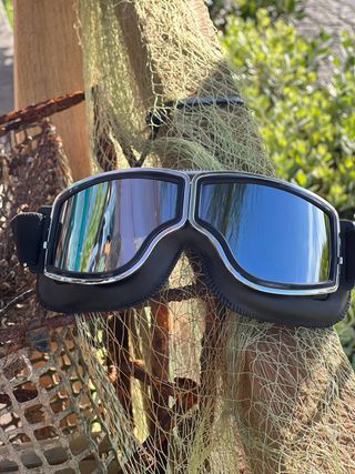Gafas con un diseño clásico y atemporal, perfectas para moto, esquí, snowboard - Montura con acabado plateado. - Lentes con reflejo. - Acolchado negro alrededor de las lentes.
