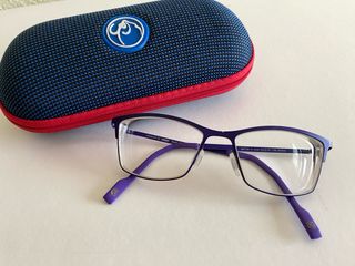 Estuche rígido para gafas de la marca Soloptical. Protege tus gafas con estilo. - Diseño elegante y compacto. - azul marino - Cierre de cremallera. - Interior suave para evitar arañazos. - la costura de la parte de atrás venia así.