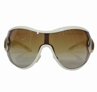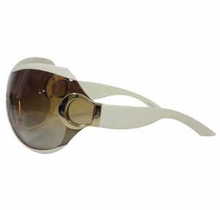 Gafas de sol de la marca Dior con un diseño moderno y elegante. - Montura en color blanco y detalles en dorado. - Lentes degradadas en tonos marrones.
