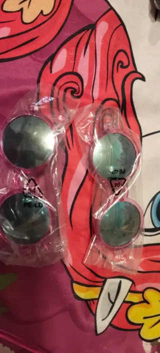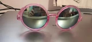 Gafas de sol con un diseño redondo y montura en color rosa. - Lentes con acabado espejo. - Montura de plástico. - Estilo moderno. Son filtro UV Tengo 2 unidades