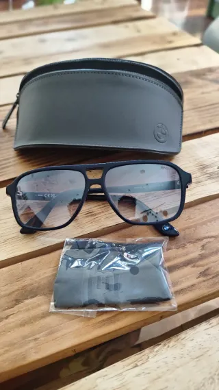 Gafas de sol de la marca BMW con un diseño moderno. - Montura en color azul y lentes espejadas. - Incluye funda protectora. - Paño de limpieza.