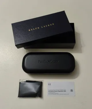 Funda original para gafas de la marca Polo Ralph Lauren. Para gafas de vista. Rígida, con fleje. Nueva, sin estrenar. Incluye gamuza original para limpiar las gafas y caja rígida con logotipo de la marca para guardar la funda u otros objetos.
