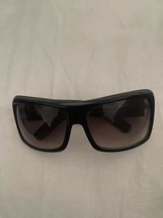 Gafas de sol , negras . En un lado de la patilla un poquito arañado (se muestra en la ultima foto )