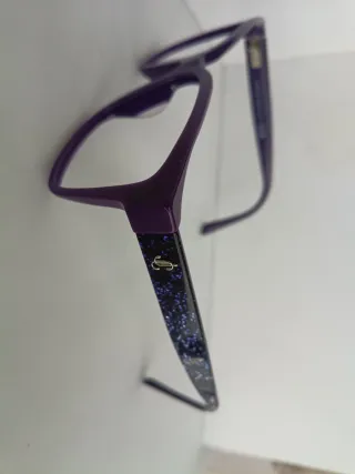 Elegantes gafas de la marca Jimmy Choo en un llamativo color morado. Sin cristal preparada para poner el suyo.