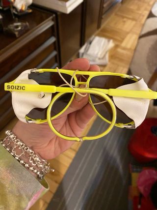 Gafas de sol estilo aviador de la marca Soizic. - Montura de color amarillo. - Lentes oscuras.