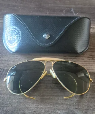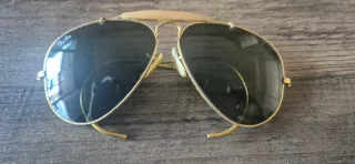 Gafas de sol de la marca Ray Ban; Forma de la montura: Aviator Color de la montura: Oro Frame material: Metal Color patillas: Marrón Color cristal: Degradado de color marrón y en perfecto estado