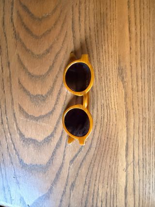 Gafas de sol para bebé de la marca Ki et La. Tienen rayas del uso pero puestas no se aprecian. Muy flexibles y resistentes. - Montura en color beige - Lentes oscuras perfectas para ojos claritos - Incluye funda y paño de limpieza. - Incluye correa para que no se le caigan
